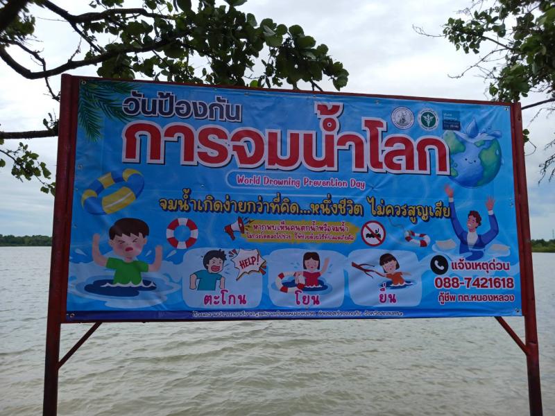 รายละเอียด : งานป้องกันและบรรเทาสาธารณภัยได้ติดป้าย ป้องกันการจมน้ำโลก เพื่อลดการสูญเสียที่อาจจะเกิดขึ้น