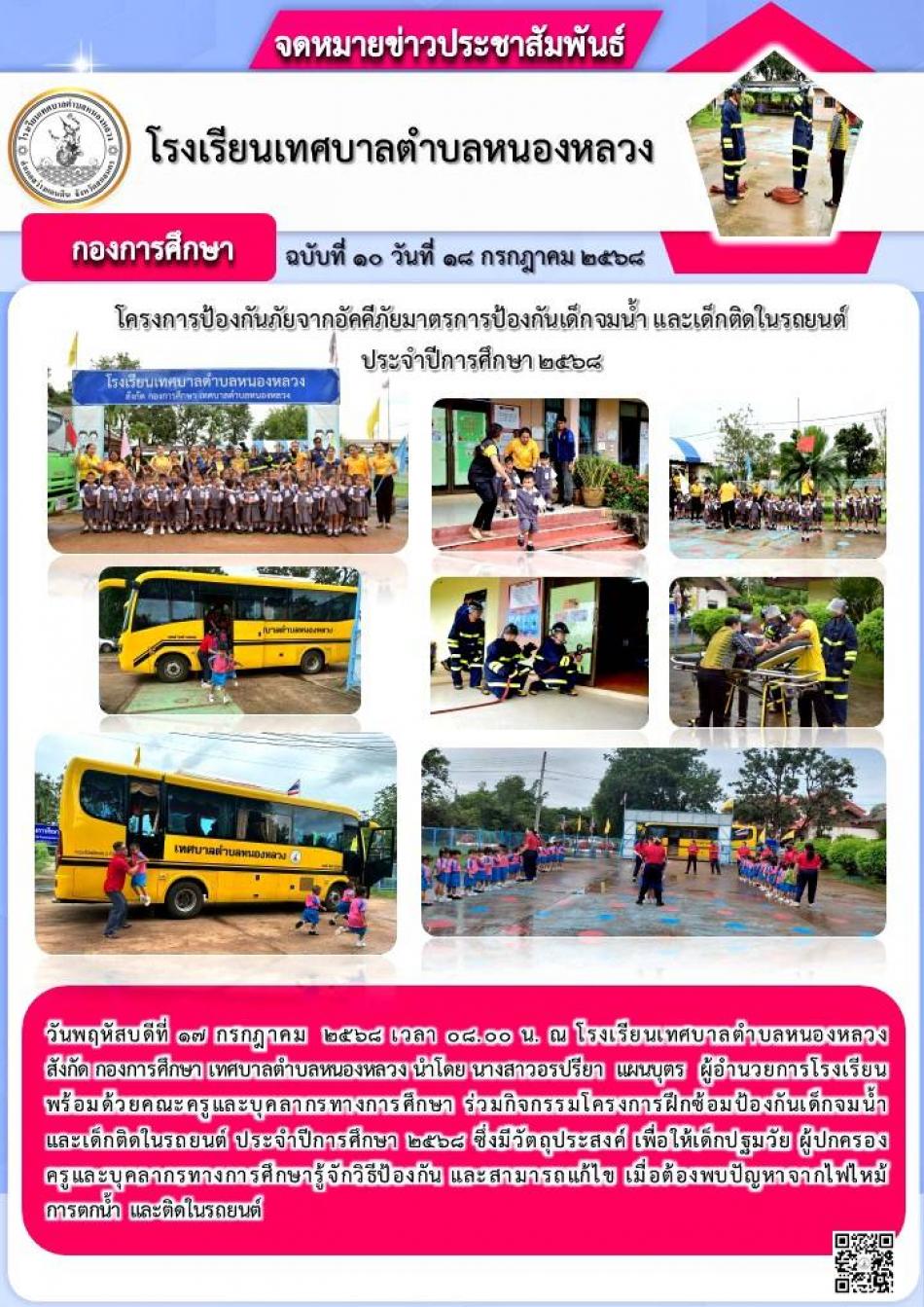 โครงการป้องกันภัยจากอัคคีภัย มาตรการป้องกันเด็กจมน้ำ และเด็กติดในรถยนต์ ประจำปีการศึกษา 2568 [12 สิงหาคม 2568]