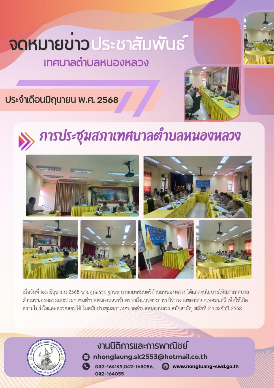 ข่าวประชาสัมพันธ์ การแถลงนโยบายของนายกเทศมนตรีตำบลหนองหลวง ในสมัยประชุมสภาเทศบาลตำบลหนองหลวง สมัยสามัญ สมัยที่ 2 ประจำปี 2568 [24 มิถุนายน 2568]