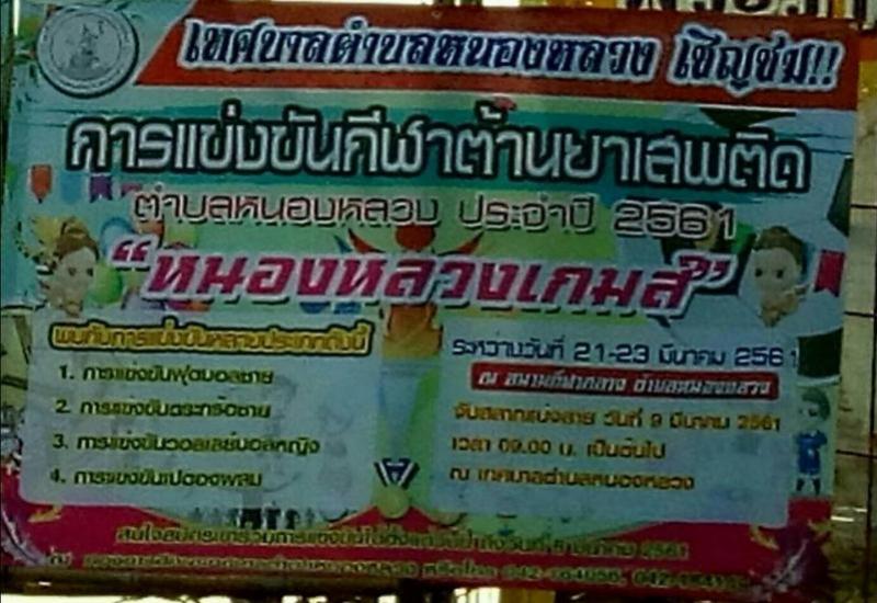 เชิญร่วมงานแข่งขันกีฬาต้านยาเสพติดตำบลหนองหลวง "หนองหลวงเกมส์" ประจำปี 2561 (2 ภาพ)