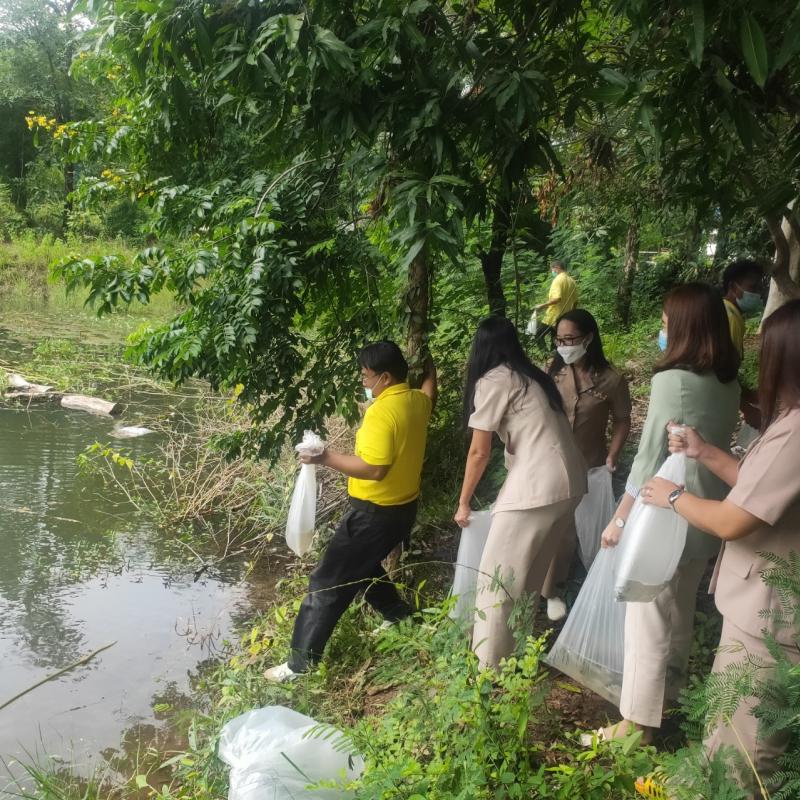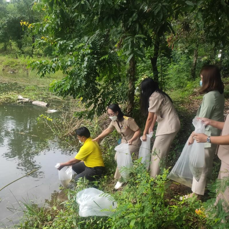ชาวเทศบาลตำบลหนองหลวง ร่วมใจกันปล่อยปลา บริเวณสระน้ำหลังเทศบาล