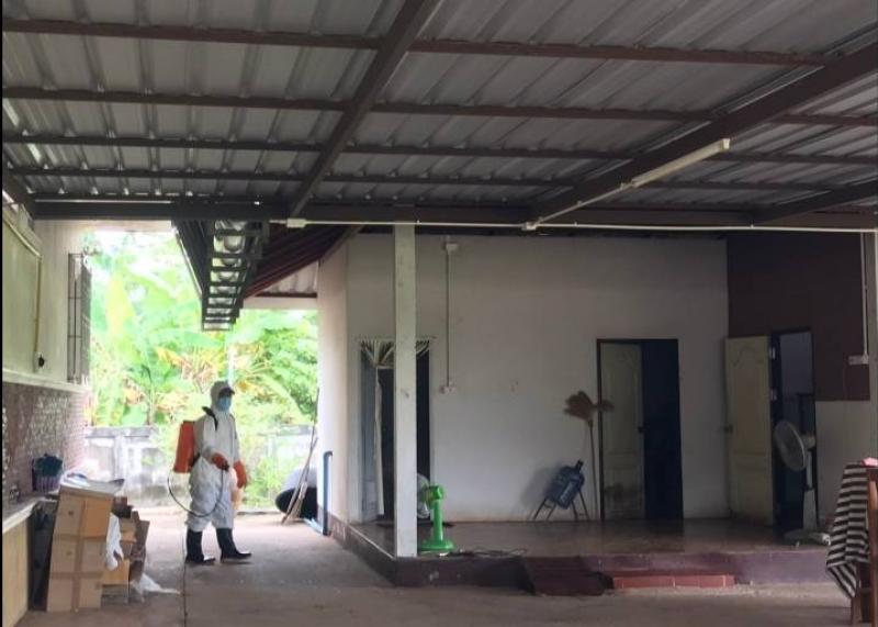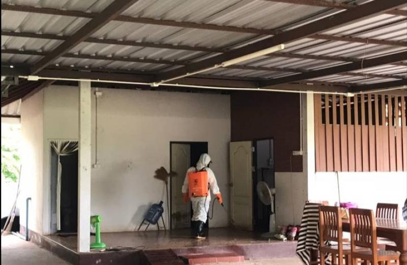 เทศบาลตำบลหนองหลวง ทำการฉีดฆ่าเชื้อบริเวณบ้านผู้ป่วยโควิด หลังได้รับการรักษาและออกจากที่กักตัวรอกลับบ้าน