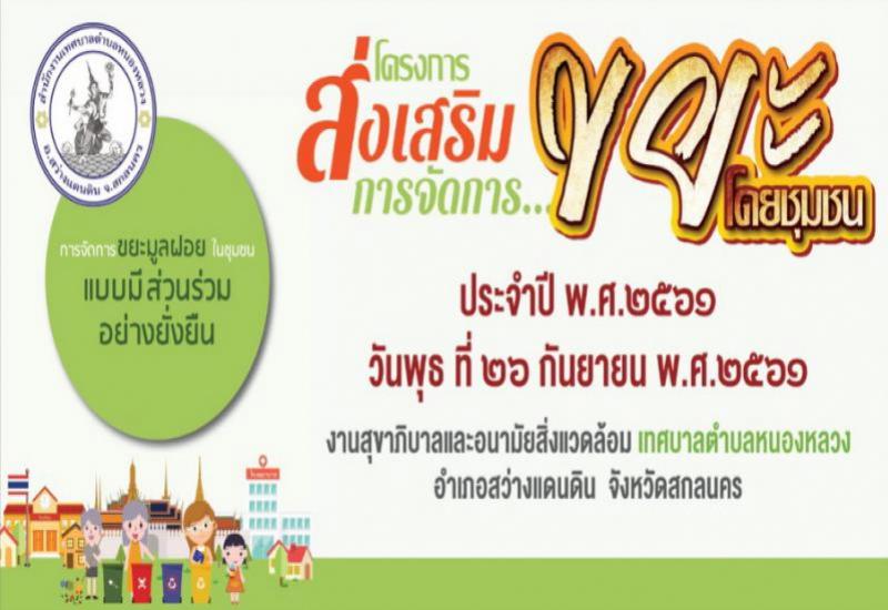 เมื่อวันที่ 26 กันยายน พ.ศ.2561 ท่านนายกสุทิน บุญมาก นายกเทศบาลตำบลหนองหลวง ทำพิธีเปิดโครงการส่งเสริมการจัดการขยะโดยชุมชน แบบมีส่วนร่วมอย่างยั่งยืน ประจำปี พ.ศ.2561 ส่วนงานสุขาภิบาลและอนามัยสิ่งแวดล้อม เทศบาลตำบลหนองหลวง ออกให้ความรู้ให้กับประชาชนในชุมชน (5 ภาพ)