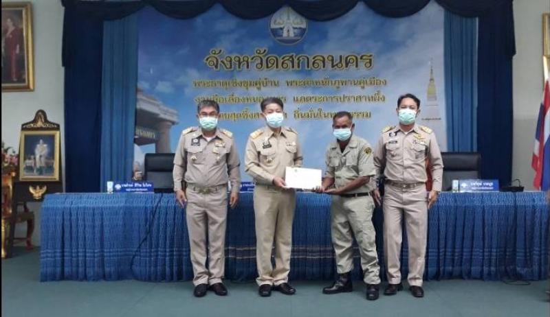 เทศบาลตำบลหนองหลวง พร้อมด้วย อพปร.เข้ารับเงินสงเคราะห์ ที่ศูนย์บัญชาการเหตุการณ์ จังหวัดสกลนคร