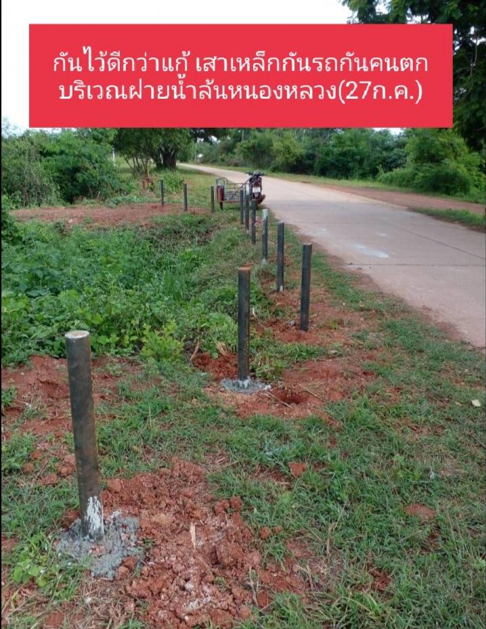 เทศบาลตำบลหนองหลวง จัดทำเสารั้วเหล็ก บริเวณฝายน้ำล้นหนองหลวง [27 กรกฎาคม 2564]
