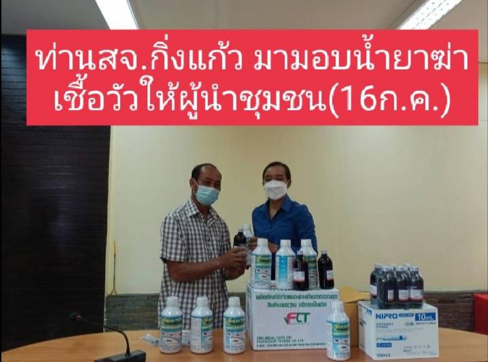 สจ.วงศ์อะเคื้อ บุญศล ได้นำน้ำยาป้องกันเชื้อโรคลัมปี สกิน มามอบให้กับผู้นำชุมชน ในตำบลหนองหลวง [16 กรกฎาคม 2564]