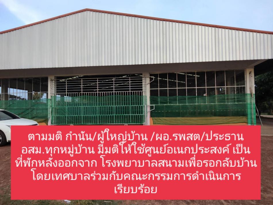 ตามมติ กำนัน ผู้ใหญ่บ้าน ผู้อำนวยการโรงพยาบาลส่งเสริมสุขภาพตำบล ประธานอาสาสมัครหมู่บ้าน มีมติให้ใช้ศูนย์เอนกประสงค์และพื้นที่ค่ายเสรีไทย ค่าย A เป็นที่พักหลังออกจากโรงพยาบาลสนาม เพื่อรอการกลับบ้าน... [4 สิงหาคม 2564]