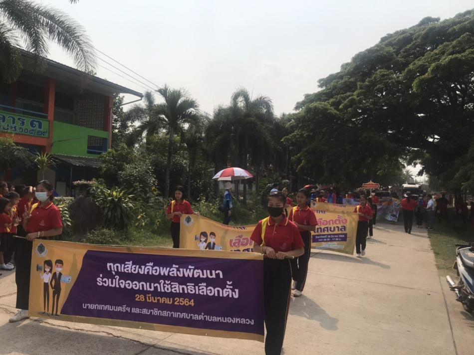 กิจกรรมเดินรณรงค์เชิญชวนพี่น้องชาวตำบลหนองหลวงให้ออกไปใช้สิทธิเลือกตั้งสมาชิกสภาเทศบาลและนายกเทศมนตรีตำบลหนองหลวง โดยร่วมกับโรงเรียนหนองหลวงวิทยานุกูล [19 มีนาคม 2564]