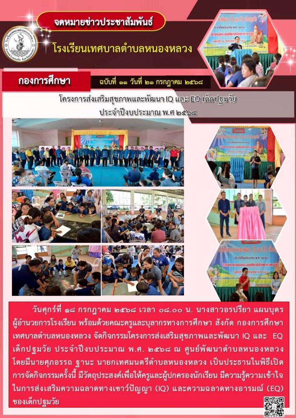 โครงการส่งเสริมสุขภาพ และพัฒนา IQ และ EQ ของเด็กปฐมวัย ประจำปีการศึกษา 2568 [12 สิงหาคม 2568]