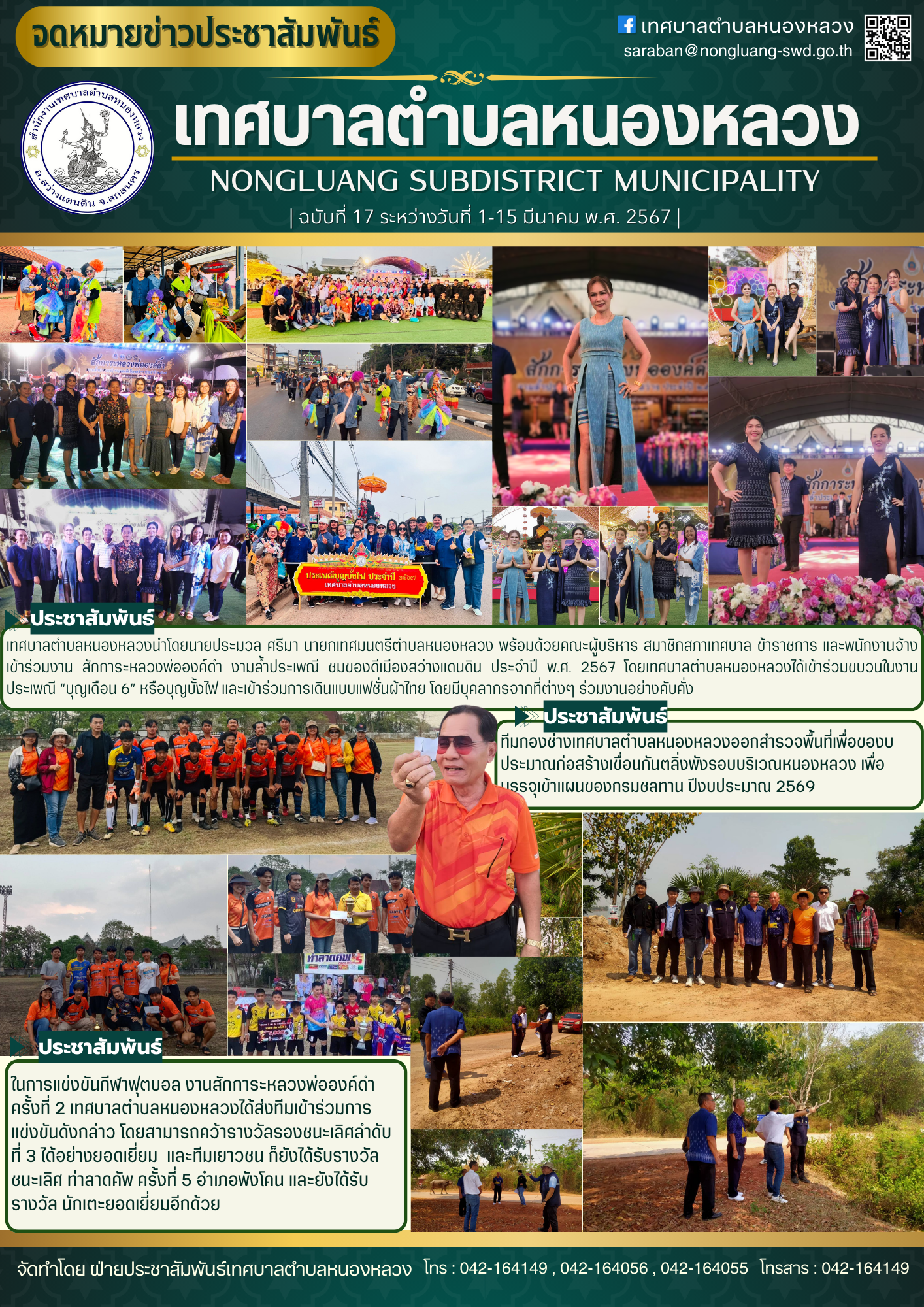 เทศบาลตำบลหนองหลวง ขอเชิญชวนประชาชนผู้ใช้บริการ ร่วมตอบแบบวัดการรับรู้ของผู้มีส่วนได้เสียภายนอก ตามตัวชี้วัดการประเมินคุณธรรมและความโปร่งใสในการดำเนินงานขององค์กรปกครองส่วนท้องถิ่น ประจำปีงบประมาณ... [4 มีนาคม 2567]