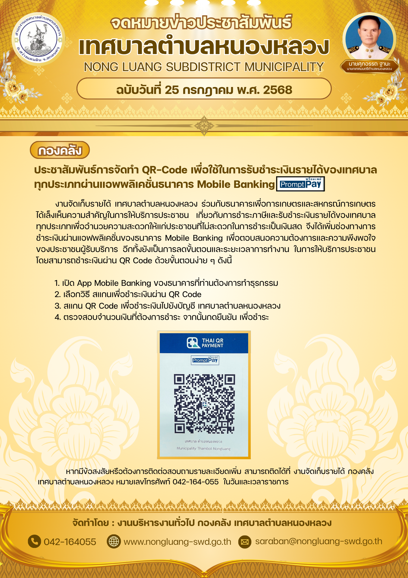 ประชาสัมพันธ์การจัดทำ QR-Code เพื่อใช้ในการรับชำระเงินรายได้ของเทศบาลทุกประเภทผ่านแอพพลิเคชั่นธนาคาร Mobile Banking